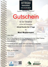 Ein Offroad-Training mit Miet-Geländewagen ist auch als Gutschein erhältlich – die perfekte Geschenkidee für Männer und Frauen, die außergewöhnliche Abenteuer lieben.